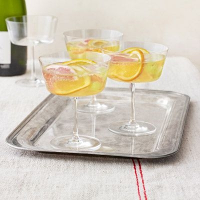 Try a new take on New Year's bubbly by sipping this cocktail, featuring St-Germain-soaked winter fruit and prosecco.